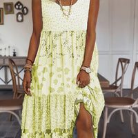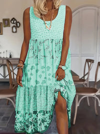 Channel effortless charm with the Luna Boho Patchwork Midi Dress — a dreamy blend of vintage vibes and modern ease. Featuring a purple and white floral print in a unique patchwork design, this sleeveless beauty boasts a flattering A-line silhouette and a classic round neckline.