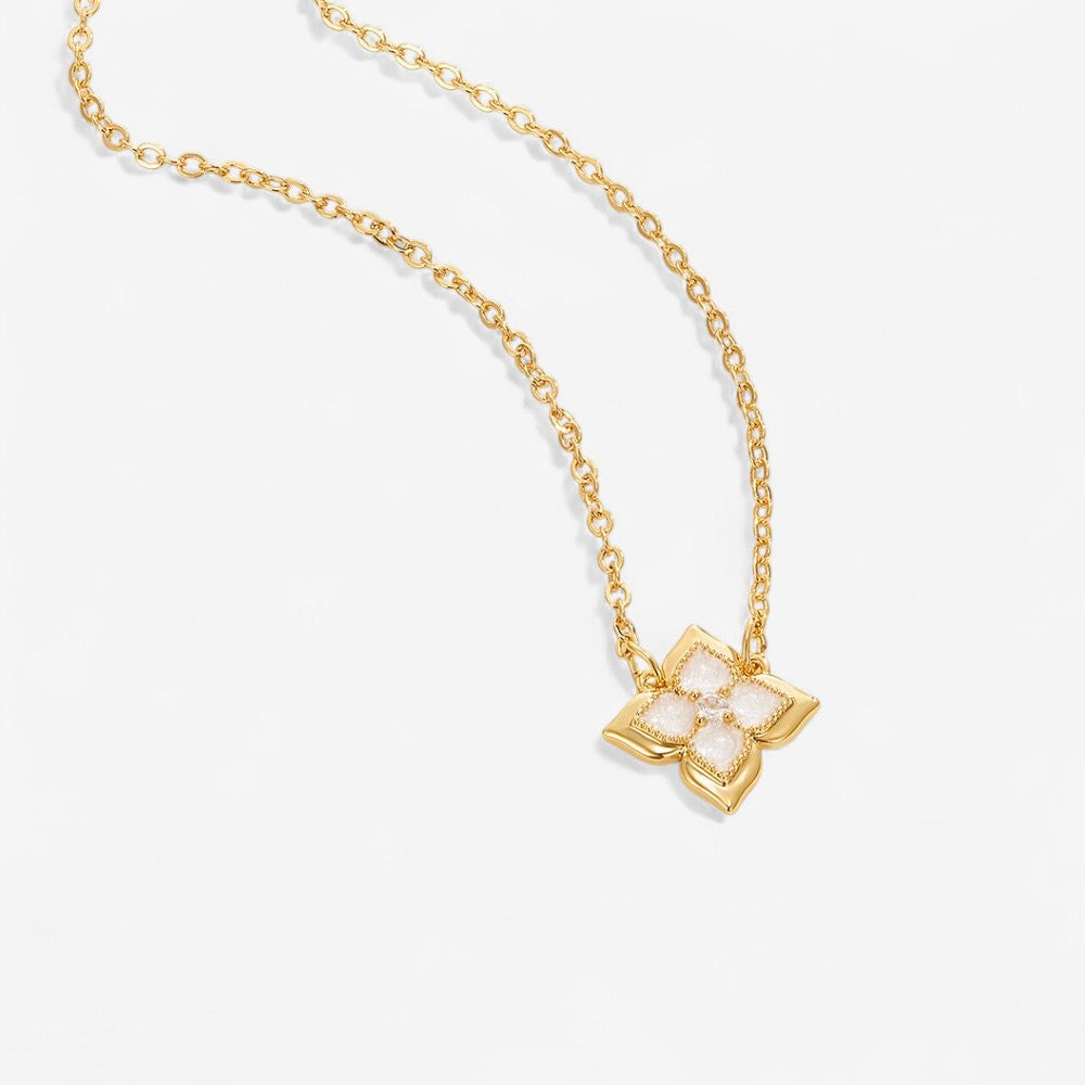 This dainty necklace features a petite white clover pendant, symbolizing luck and good fortune, making it a meaningful addition to your jewelry collection.