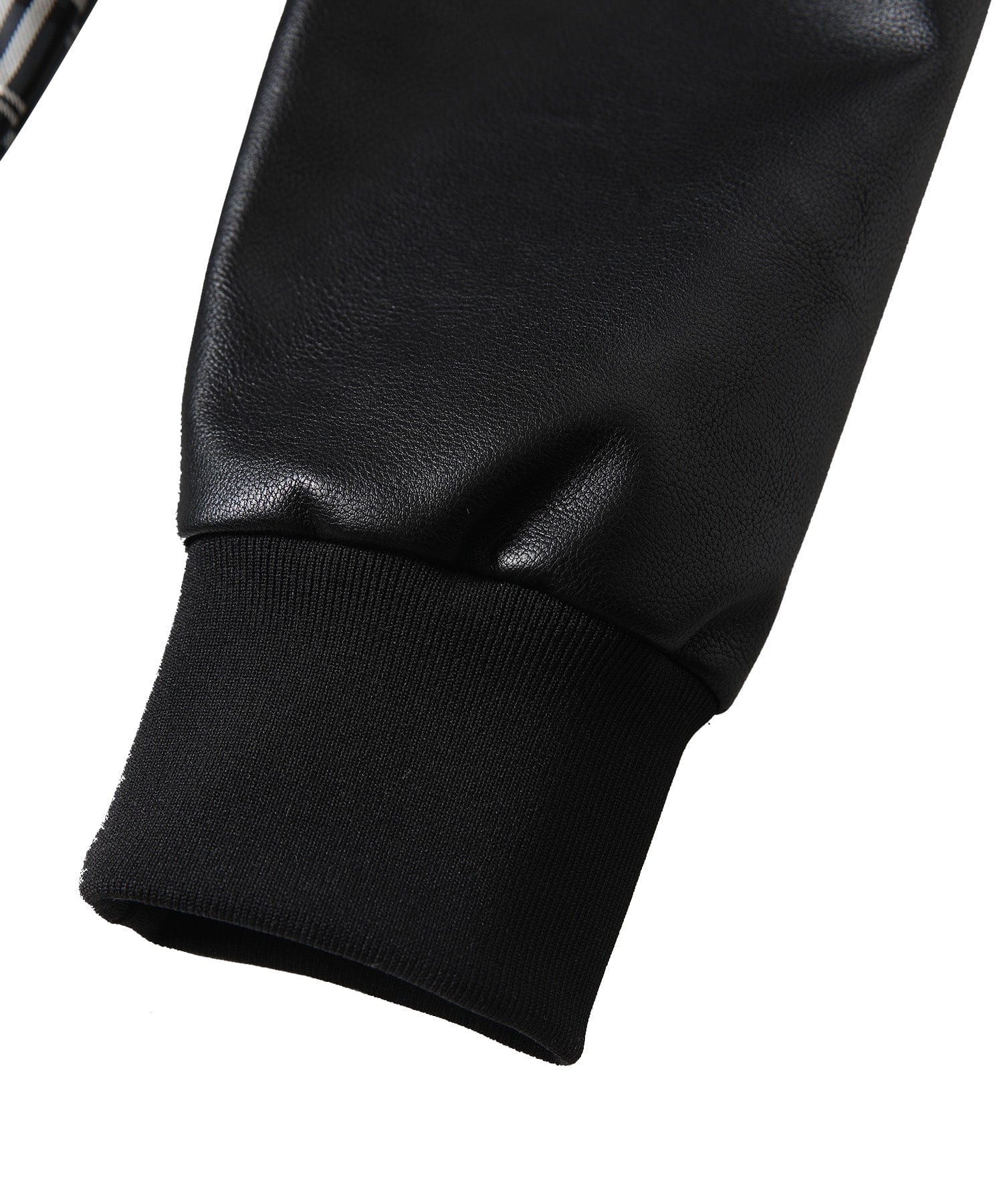 Make a bold statement with the Serremo Gridlock Jacket. This eye-catching jacket features a striking black and grey plaid pattern across the body, contrasted with sleek black faux sleeves for a modern, edgy look.