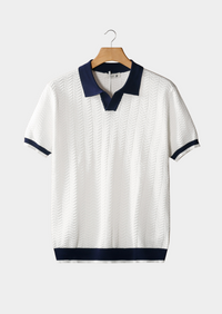 Tailored to a regular fit and crafted from soft, lightweight knit, this polo is elevated by its refined chevron-textured pattern that adds dimension without overwhelming. The open collar design offers a laid-back feel, balanced by contrast tipping on the sleeves, collar, and hem for a clean, sporty finish. With its breathable construction and classic silhouette, it’s a standout piece that transitions effortlessly from summer brunches to evening get-togethers.
