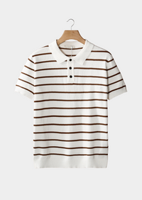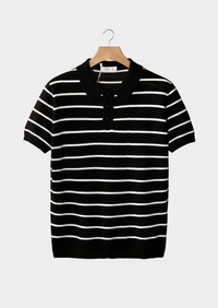 Tailored to a regular fit and crafted from lightweight, breathable knit, this polo blends timeless design with a modern feel. The subtle textured fabric is complemented by evenly spaced horizontal stripes, adding visual rhythm and a touch of retro charm. Featuring a clean button placket and structured collar, it’s a piece that captures relaxed sophistication—perfect for sunny strolls, café moments, or evening socials.