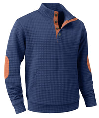 Rugged meets refined—this textured pullover features a quilted grid pattern, contrast suede elbow patches, and button-up collar for a bold, outdoorsy look. The perfect blend of function and flair. Comes in 5 different colors.